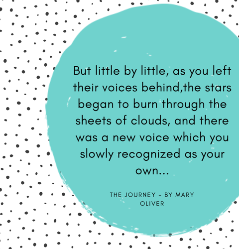 This is a three part exercise designed to increase awareness of our own strengths and the power of our experiences. Start by reading the poem "The Journey" by Mary Oliver.